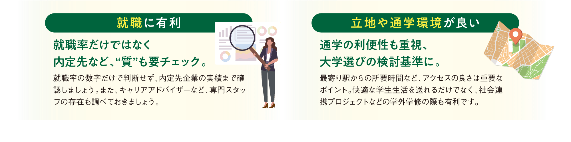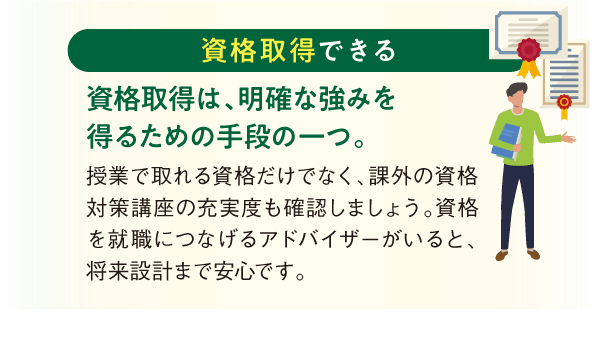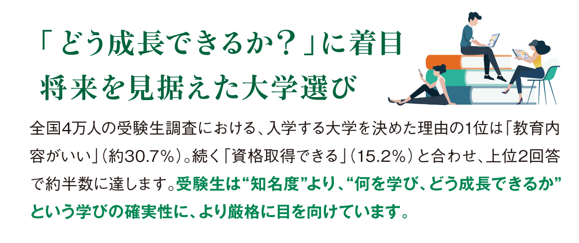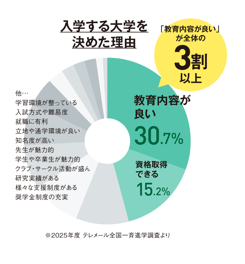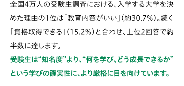 教育内容、資格、学びの環境など、大学選びのプロセスが数字で見えてきます。